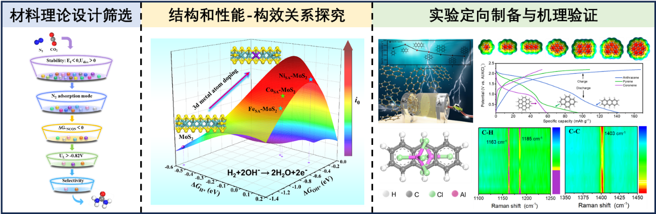 ◎研究方向 1、新能源材料的智能设计与制备:融合人工智能、多尺度模拟与实验研究,聚焦燃料电池(HOR/HER、CH4转化、C-N偶联)与新型可充电电池(锂硫电池、锂氮电池、锂二氧化碳电池、铝离子电池)体系,探索电极材料微观结构与性能的内禀关系,揭示活性位点电子结构调控机制,最终设计并制备出经济、高效的新型电极材料。