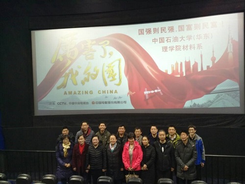 3月16日下午4点10分,材料物理与化学系党支部组织全体党员观影爱国纪录片《厉害了,我的国》。影片呈现了我国党的十八大以来中国的发展和成就,以及十九大报告中习近平总书记提出的中国特色社会主义进入新时代的重大论述,回顾过去,立足现在,展望未来。通过观看该影片,有利于全党人员感受老一辈科学家的苦心孤诣、无私奉献精神,以及新一代的奋勇顽强意志品质,坚定科技兴国的信念;同时,本次爱国主义情怀教育,让人不禁为祖国崛起而骄傲,为身为一名中国人而自豪。