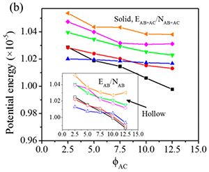 针对上述难题,胡松青团队在国家自然科学基金和中央高校基本科研业务费专项资金项目的资助下,采用耗散粒子动力学模拟方法探索了复合型嵌段共聚物混合溶液的协同自组装,从共聚物的分子构象和官能团化学性质(共聚物自身分离度、不同分子混溶度、相对浓度、溶剂选择性等参量)的角度对该体系进行了系统的理论研究,从分子原子层次揭示了线/线共聚物共混体系的协同自组装机理,获得了大量几何形貌复杂的复合纳米组装体,并基于得到的特殊构型进行了组合方案设计,提出构建和调控新型多级纳米组装体的新思路,研究成果有助于推动新型软物质纳米器件构筑理论和技术的发展。