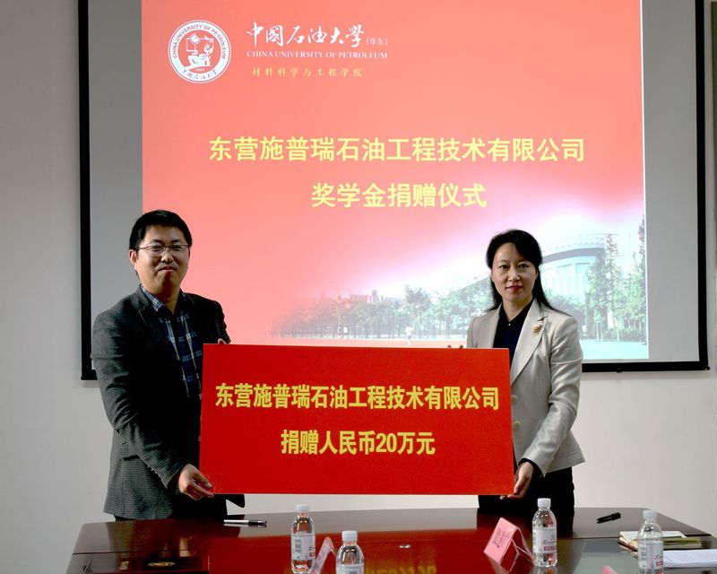 10月24日,东营施普瑞石油工程技术有限公司与tyc41183太阳成集团的奖学金捐赠仪式及双方共建仪式在工科楼E座举行。东营施普瑞石油工程技术有限公司副总经理孙永强、学校合作发展处处长王效美、院领导郭文跃及相关负责人出席仪式。