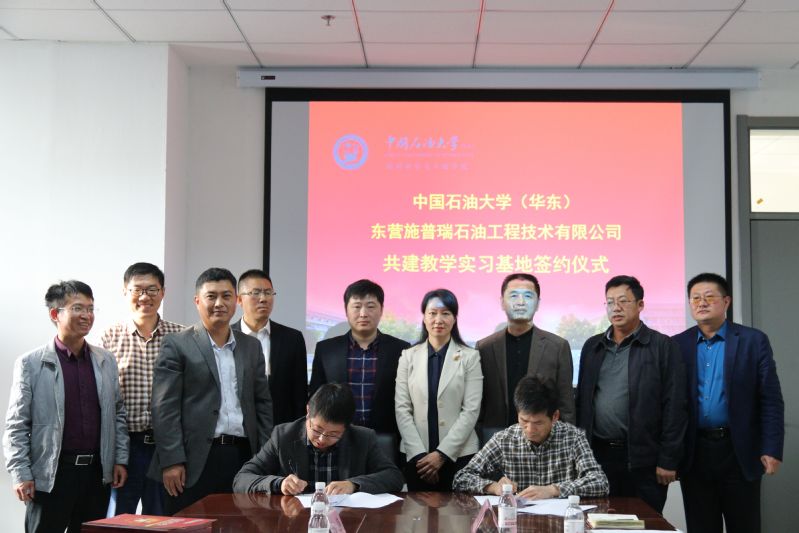 王效美代表学校接受捐赠,并向东营施普瑞石油工程技术有限公司赠送捐赠证书和纪念牌。郭文跃、孙永强签署共建本科教学实习基地及研究生工作站、腐蚀与防护实验室和油田化学品研究所协议。