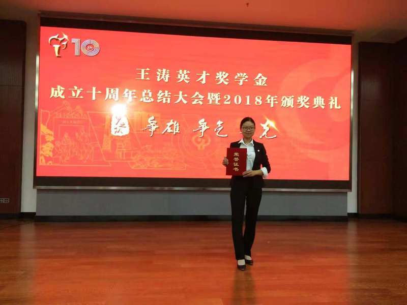 11月17日,王涛英才奖学金成立十周年总结大会暨2018年颁奖典礼在中国石油大学(北京)举行。我院博士生熊雅在2018年度王涛英才奖学金评选中脱颖而出,作为全校唯一博士生获此殊荣。