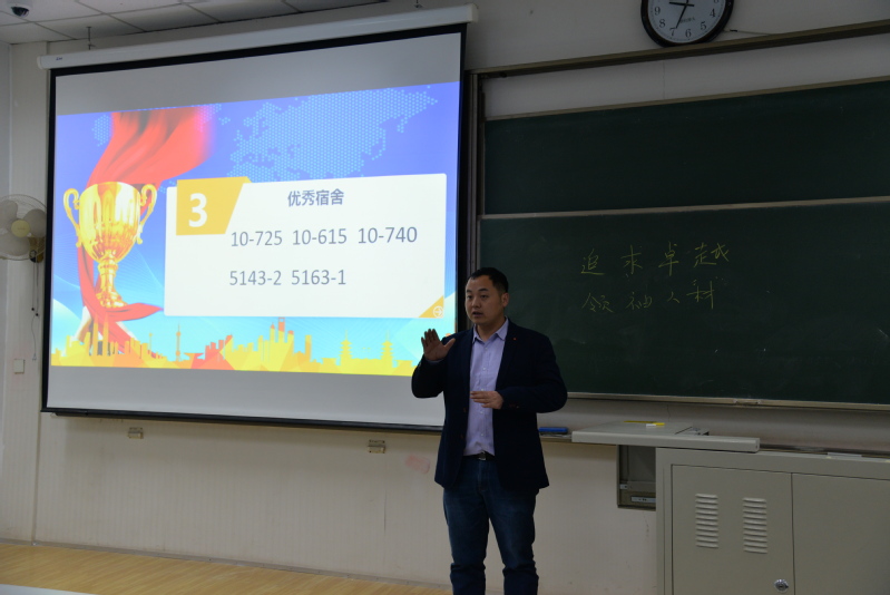 会议伊始,辅导员助理李寿玺播放了一段由2018级tyc41183太阳成集团宿舍视频征集大赛的优秀作品剪辑而成的精彩视频,反映了同学们日常生活,展现18级同学的寝室风采。随后,李寿玺指出目前18级寝室内务各方面存在的问题,并着重强调在日后内务整理的标准。本次会议对优秀寝室进行表彰,并颁发优秀宿舍流动红旗,树立先进典型,以供其他寝室学习。与此同时,会议还公示了寝室内务不合格的个人,以此起到警示作用。会议最后,辅导员徐拥军总结:“做优秀卓越的人,就要从点滴做起,从寝室内务做起,养成良好的个人习惯,增强责任担当意识。”