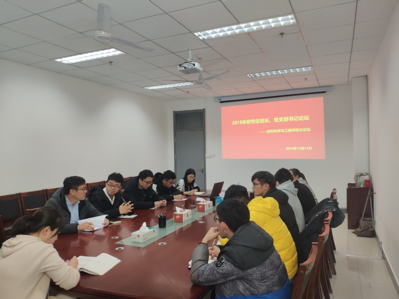 会议伊始,卜红梅介绍本次论坛主要内容为“如何做好研究生党团班协同育人工作”和“如何发挥研究生党员的带头作用”。接着,材料研1601班党支部书记张希强就“如何发挥研究生党员的带头作用”这一问题分享心得体会。他指出要通过召开形式多样的组织生活,加强党支部成员的沟通,增强归属感。张希强还强调:“党员有高度的觉悟,时刻注意自己的言行,在学习与生活中充分发挥先锋模范带头作用。”随后,研1601班班长梁绍祥就“如何做好研究生党团班协同育人工作”这一问题发言:“作为班长,不一定要做团队的绝对核心、领头者,要合理定位,做发起者,充分利用班内各个同学的优势,增强班级凝聚力。另外,班内党员要充分发挥带头作用,积极响应号召,做班级工作的润滑剂。”