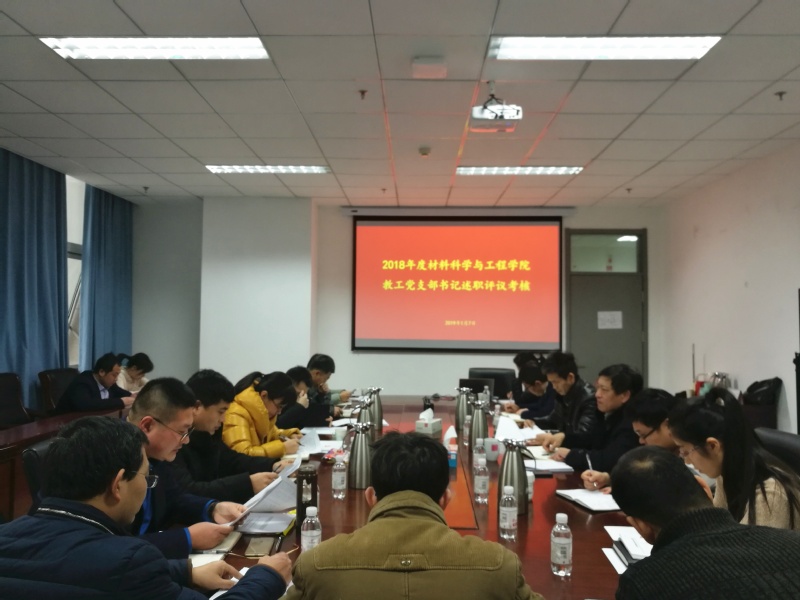 1月7日,为加强党支部建设,落实学校党委《关于师生党支部书记述职评议考核工作的指导意见》要求,材料科学与工程学院党委开展教工党支部书记述职评议考核工作。党委书记门小刚、常务副院长郭文跃、教工党支部书记及支部委员等18人参加考核会。会议由党委副书记孙启龙主持。