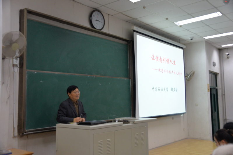 郑其绪教授从古代的强盛到近代的屈辱,讲述了近代中国道路的近代探索,中国共产党浴血奋战28年,建立了新中国,确立了中华民族的希望之路。从新中国成立初期的无所适从到中国道路的新中国探索,再到如今共产主义运动的再度辉煌。郑其绪教授通过这些引出中华民族自古以来的信念:国富民强、举世无敌。让学员们深刻感受到信念的魅力及其重要性。他随后以曾经出现在中国的贪官为例,告诉学员们唯有保持清醒,励志前行才能驾驭大方向,唯有脚踏实地、践行使命才能拥抱新时代。郑其绪教授教育学员们:“要拒绝人生无知盲、无事茫、无功忙,要拥有领航意识、人因意识、岗位意识,成为新时代的人才,做忠诚的共产主义战士!”党课结束后,孙启龙老师勉励同学们要不忘初心,心怀信念,希望同学们能以郑教授为榜样,做一名忠诚的共产主义战士。