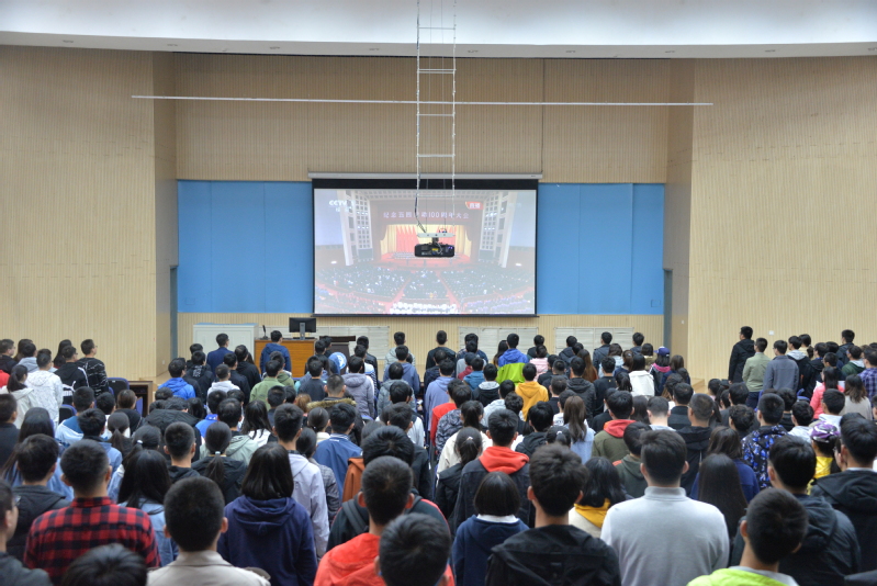 4月30日10时30分,纪念五四运动100周年大会在人民大会堂隆重举行。中共中央总书记、国家主席、中央军委主席习近平出席大会并发表重要讲话。tyc41183太阳成集团广大党员同志和师生在南教100号以及工科E517会议室通过网络观看直播,集体学习大会精神。