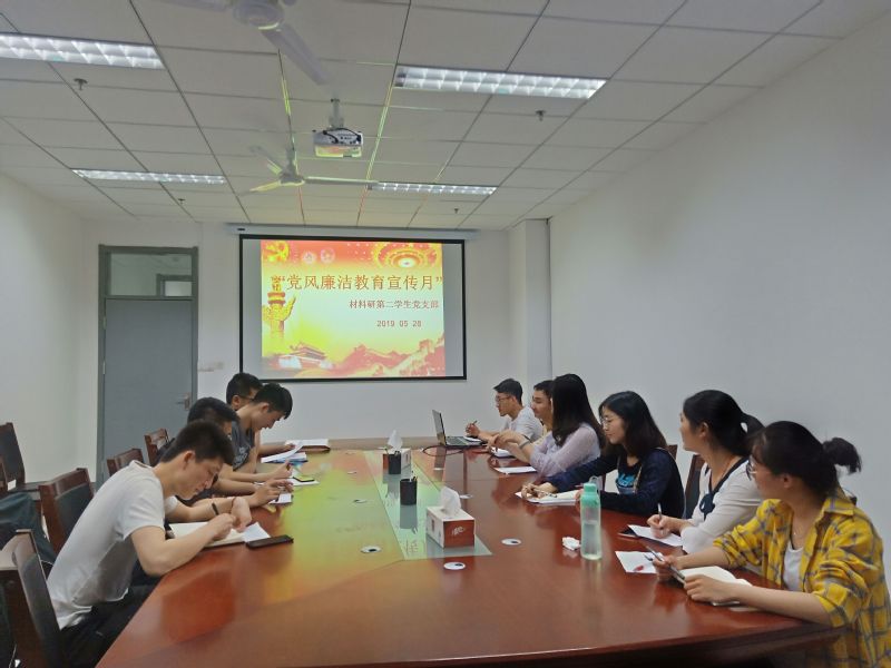 为做到以案示警、以案释纪、以案促学,进一步增强学生党员守纪律、讲规矩,知敬畏、存戒惧的思想意识。tyc41183太阳成集团研究生第二学生党支部于5月28日晚在工科E座517会议室开展了“党风廉洁教育”主题党日活动。本次会议由党支部书记李文强主持,党支部全体成员参与学习。
