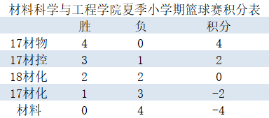 比赛历时一周,各支队伍展现出顽强意志,为观众奉献上精彩的表现。最终,2017级材料物理专业四战全胜积四分位列第一,2017级材料成型及控制工程专业与2018级材料化学专业分别积两分、零分位于为第二、三名。比赛双方本着“友谊第一,比赛第二”的原则,在赛后进行友好交流。其中材物1701班学生陈君益赛后说道,“通过比赛增长了我们队伍内部的默契,更增加了专业之间的交流,给更多爱好体育的人更多的舞台”。