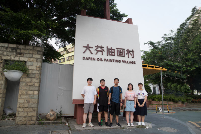 实践队员于大芬村入口处合影 姬鹏飞摄