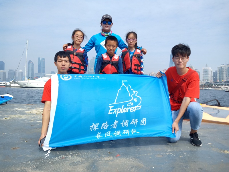 调研队员与帆船俱乐部小朋友合影 滕怀泽摄