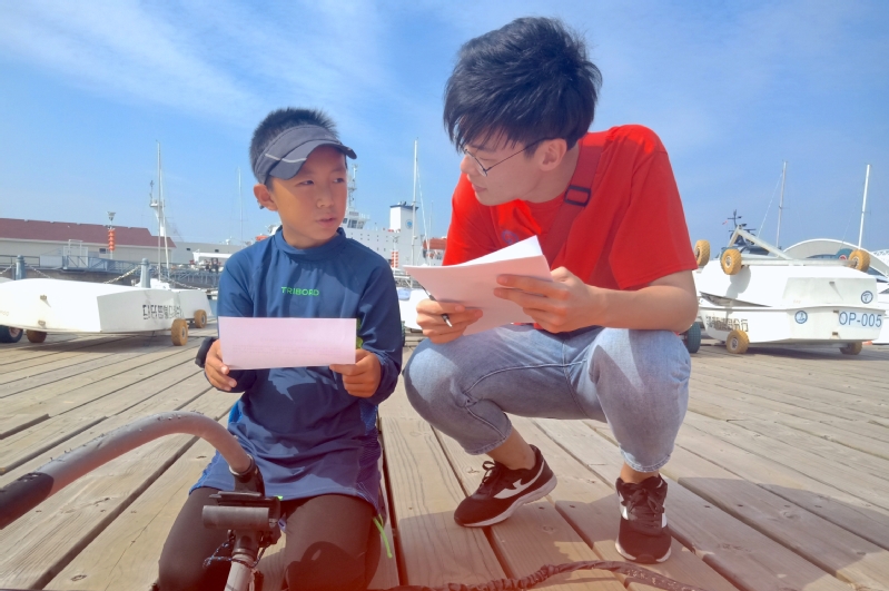 调研队员采访帆船俱乐部的小朋友 滕怀泽摄