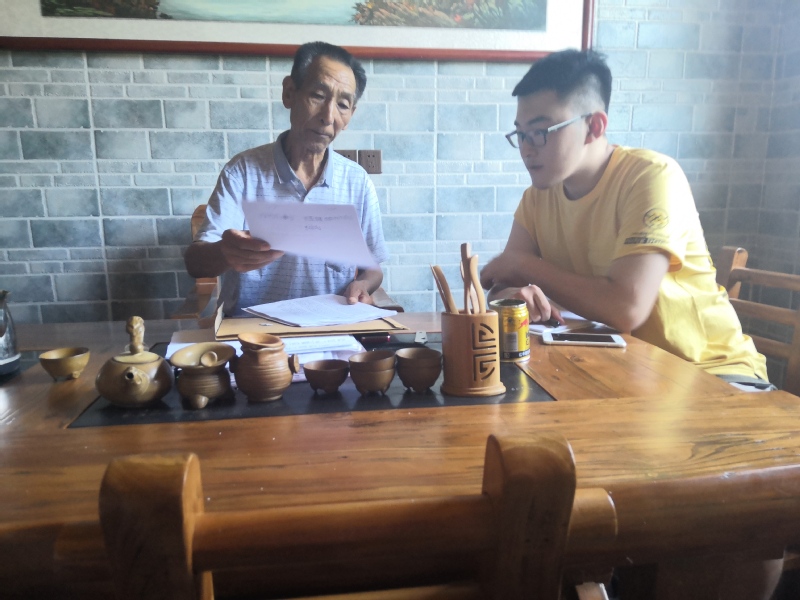 李桂存先生为调研队员讲解洛南静板书的历史渊源、发展传承等情况 程云鹏摄
