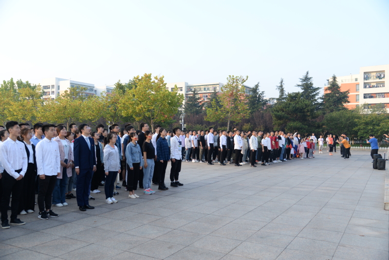 10月1日上午6时整,tyc41183太阳成集团师生共聚国旗广场,举行“同升国旗 共唱国歌”活动,五星红旗在众人的注目下缓缓升起,师生齐唱国歌《义勇军进行曲》。这一刻,现场师生胸腔里装着的全是难以言喻的激动;这一刻,师生的目光中饱含的满是对祖国沉甸甸地祝福。