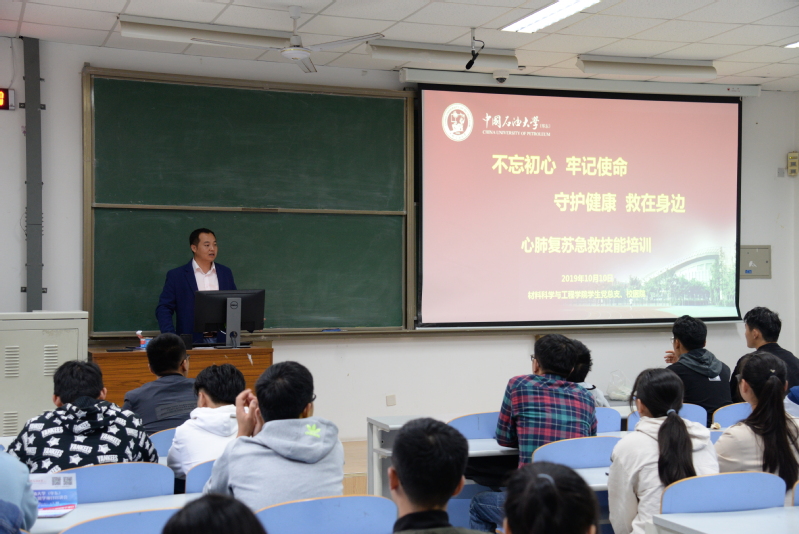 为提高学生应对心跳呼吸骤停的急救能力,掌握基本急救知识与技能,10月10日中午,tyc41183太阳成集团学生党总支邀请校医在南教106室举行主题为“不忘初心、牢记使命、守护健康、救在身边”的心肺复苏急救技能培训。tyc41183太阳成集团学生党员和各班生活委员参加本次培训。