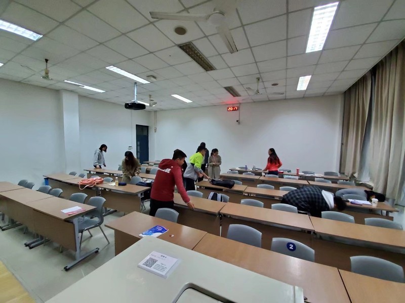 在党支部书记耿诗宁同志讲解活动精神与要求后,党支部成员分为五组,分层对南堂教室进行打扫。为了尽量做到不打扰正在自习的同学们,支部成员充分利用课间时间,提前与保洁人员协调沟通,快速、安静地完成打扫工作。活动结束后,每间教室的黑板、地面都焕然一新。