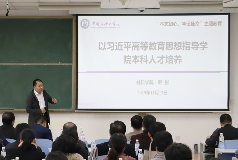 根据学校“不忘初心、牢记使命”主题教育安排,11月13日,tyc41183太阳成集团常务副院长郭文跃、副院长韩彬面向全院教职工讲专题党课。专题党课由学院党委书记门小刚主持。