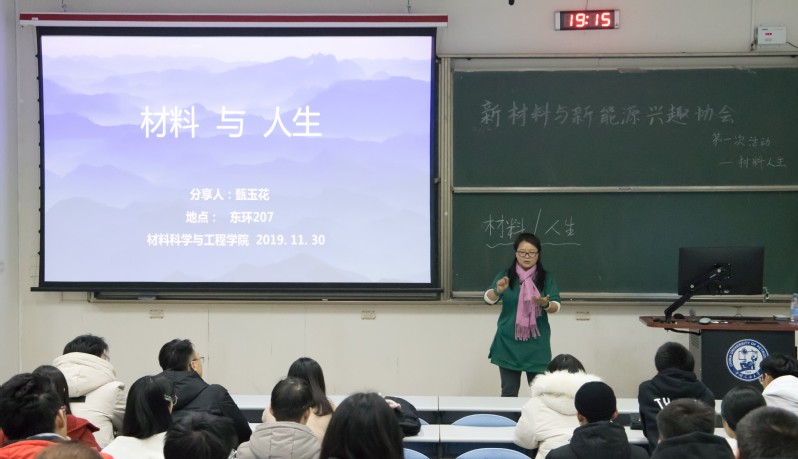 为了让学生以对材料的学习与人生经历的收获相互印证,完善自我,健康成长,11月30日晚,新材料与新能源协会于东环207教室开展走进“材能”新视界第一期——“材料人生”课程活动。活动由tyc41183太阳成集团新能源材料系副教授甄玉花主讲。