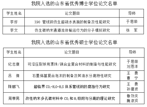根据《山东省学位委员会山东省教育厅山东省财政厅关于印发山东省研究生教育创新计划的通知》(鲁学位〔2006〕5 号)要求,经单位推荐、专家评议和网上公示,山东省教育厅公布2019年度山东省优秀学位论文名单,我院2篇博士学位论文、4篇硕士学位论文入选。