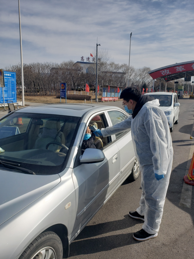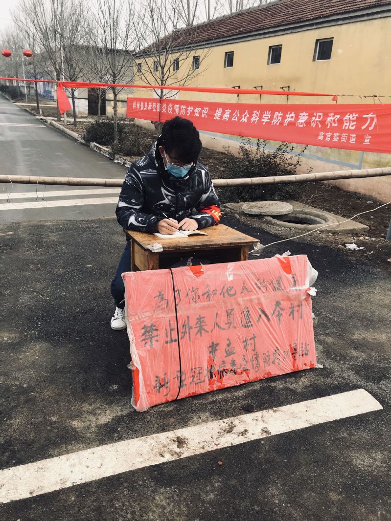材料工程2018级研究生刘俊,积极到所在疫情防控卡口报道并参与值班志愿服务工作,跟随山东省邹平市码头镇炭刘村工作人员开展基层防控工作,协助工作人员做好进出村口信息登记及体温检测工作,落实好邹平疫控追溯系统扫码进出规定。