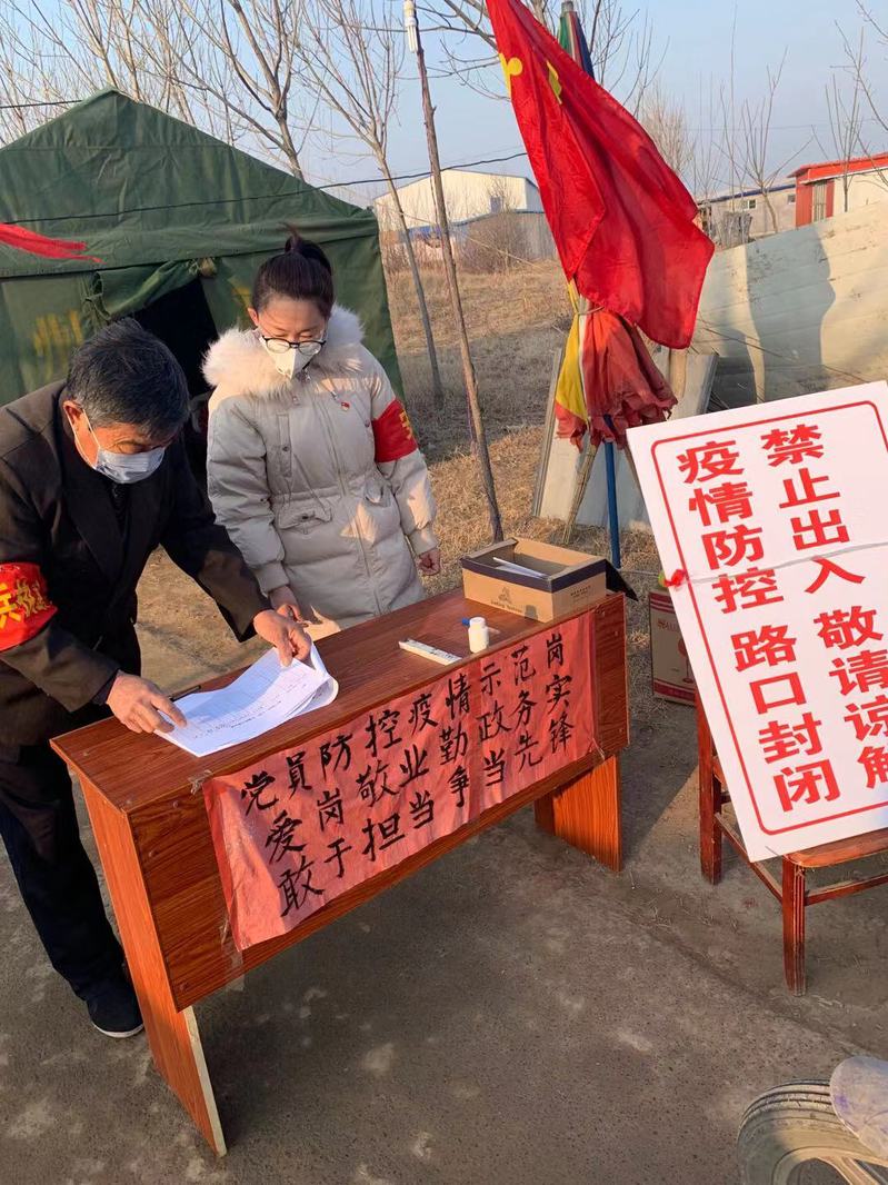 孟庆恩在村口防疫劝导站值班
