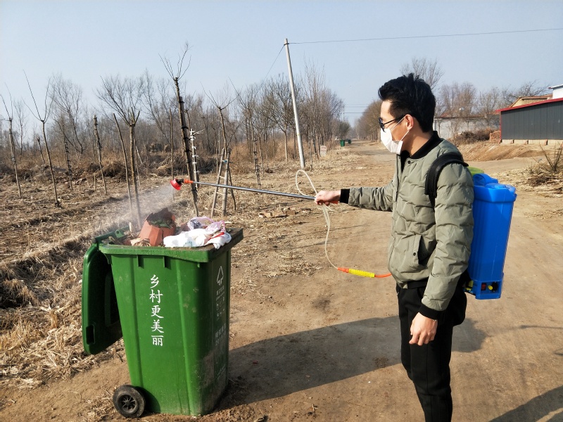 毕晓健为村里垃圾桶消毒