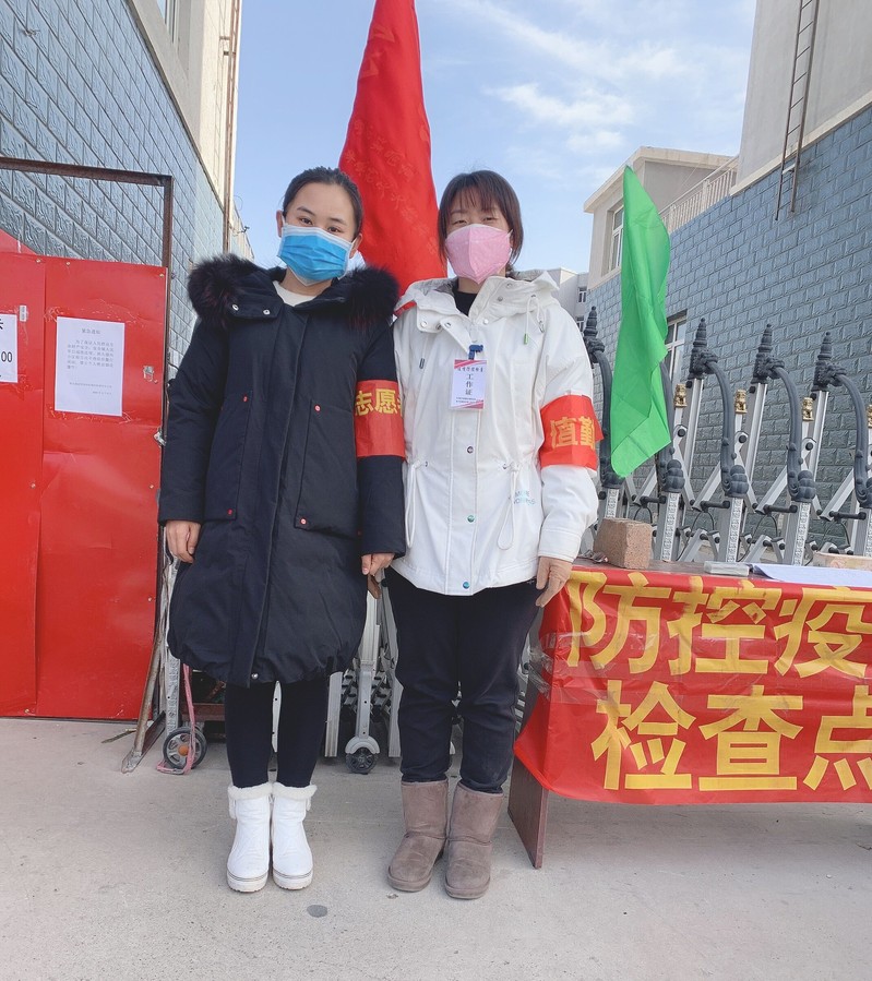2019级博士生周赛男(左)参加社区疫情防控志愿工作