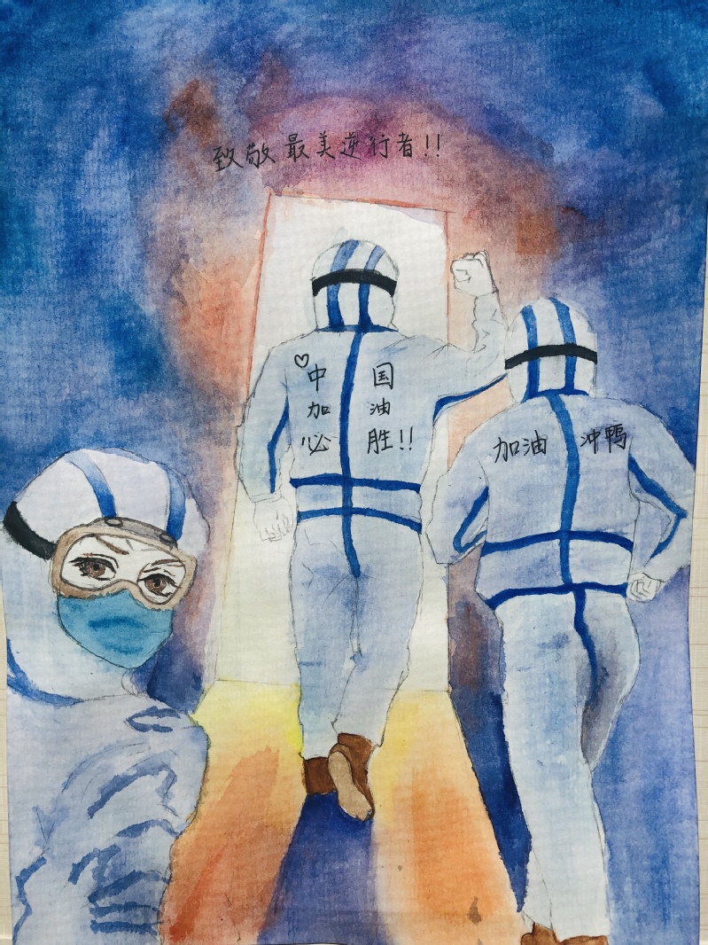 2019级本科生傅梦瑶制作宣传画致敬最美逆行者