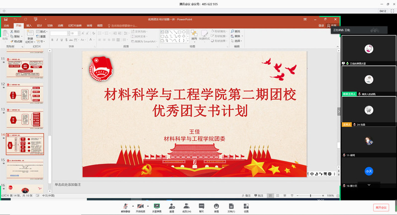 为规范基层团支部工作,提升团支部书记业务水平,3月28日晚,tyc41183太阳成集团团委采用线上会议形式举行“优秀团支书计划”第一期培训。本次培训由学院团委书记王佳老师主讲,学院全体团支部书记参加。