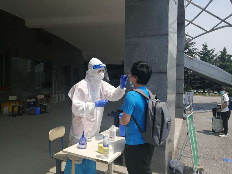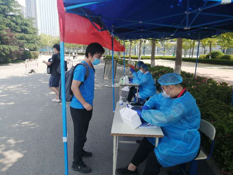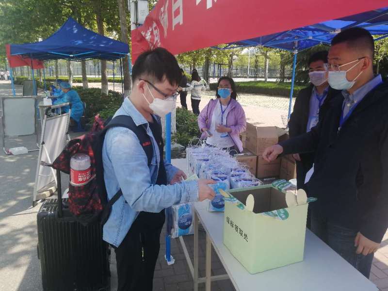 26号上午开始,返校学生们佩戴口罩在学校检疫通道入口处间隔两米有序排队,工作人员严格按照流程对返校学生行李进行消毒,并对学生进行体温检测、身份核验,以及进行核酸检测,让返校学生们感到安全感十足。学校还为学生提供接站服务,在流亭机场、火车站设置接站点,组织学生们安全有序返校。
