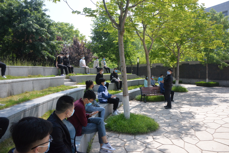 28日上午,学院党委书记门小刚、副书记孙启龙与返校学生在19号楼西侧露天花园召开了一次特殊的“班会”。孙启龙代表全院对首批返校学生表示慰问和欢迎,听取了同学们对返校过程以及接下来教育管理等方面的意见和建议,对在校期间的各项工作进行了部署,要求大家严格遵守学校各项规定,做好疫情防控,顺利渡过这个特殊的毕业季。门小刚对学生的顺利返校表达了欢迎和慰问,并对学生提出了4点希望:首先,作为一名大学生,要有较高的政治站位,在大是大非面前保持清醒的认识,增强“四个意识”、坚定“四个自信”、做到“两个维护”;其次,作为一名大学生,要有责任和担当,大事面前要沉稳,难事面前敢冲锋,担当作为,奋发有为,在中华民族伟大复兴的征程中书写属于自己的人生篇章;然后,作为一名大学生,要有较高的格局和远大的抱负,眼光长远、目标远大、敢于吃苦,真正展现一名中国大学生、石油大学大学生的风范和风采;最后,门书记希望大家在校期间严格遵守学校各项规章制度,不能松懈思想、麻痹大意,做好疫情防控各项工作,圆满完成毕业各个环节。