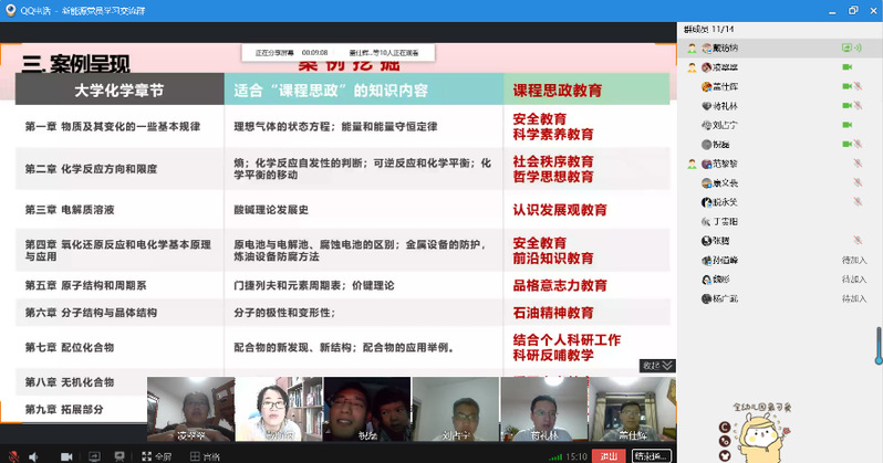 戴昉纳教授基于“三全育人”综合改革《大学化学》课程思政案例构建与实践做了精彩汇报。戴老师首先给大家阐述了课程思政和思政课程的概念,两者是隐性和显性思政的结合。对于课程思政主要从隐性思政出发潜移默化的教育学生不忘初心、牢记使命,不负韶华。根据“三全育人”的全员、全方位及全程教育理念和十大育人体系,《大学化学》课程从社会规则秩序、认识发展教育、品格意志力教育、爱国主义教育、安全意识教育、哲学辩证思想教育、科学素养教育等7个方面进行课程内容设计,探索课程思政实践。研究方法具有鲜明的特色,采用课程思政与我校石油行业“石油精神”、大学文化建设、关爱学生等相融合。努力将《大学化学》课程打造成承载“立德树人”使命的国家一流课程的同时,同时促进三全育人、促使本科生健康发展。
