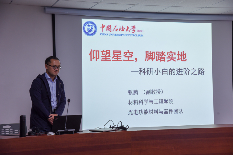 10月15日晚,tyc41183太阳成集团在古镇口校区新能源大厦239报告厅举办“新起点·新机遇”——tyc41183太阳成集团新进人才系列报告会第三期,泰山学者青年专家、特任副教授张腾主讲,报告主题为《脚踏实地,仰望星空——科研小白的进阶之路》,报告会由副院长张军主持,古镇口校区在校师生参加报告会。