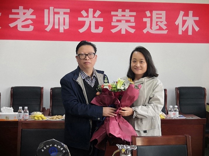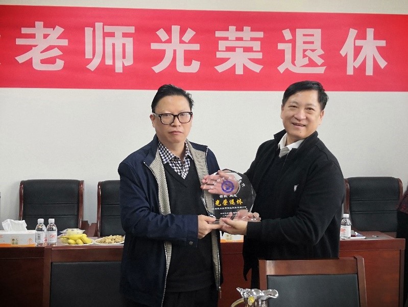 学院党委书记门小刚向雷毅教授颁发光荣退休纪念牌,高度评价了雷毅教授在学科和专业发展中的突出贡献,表达了学院领导对雷老师的关心和祝福。同时指出,退休生活是一段工作的结束,是另一段幸福生活的开始,祝愿雷老师在安排好退休生活的同时,继续关注学院的成长和发展,常回“家”看看。