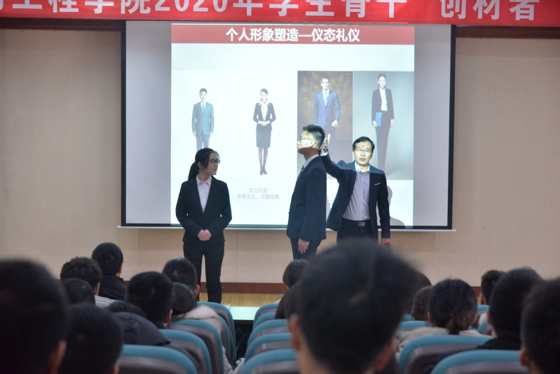 随后,杨武成教授为全体学生干部讲授培训第一讲——《做讲礼重义、德才兼备的新时代优秀学生干部》。为使学生干部对礼仪有更清晰的认识,杨武成教授从认识礼仪、个人礼仪、社交礼仪三个方面对基本礼仪展开介绍。“不学礼,无以立”,“非礼勿视,非礼勿言,非礼勿听,非礼勿动”,杨武成教授从儒家文化的角度来阐述礼仪的内涵,继而引出礼仪的核心和重要性。他指出,学生干部要掌握礼仪的核心,学会从仪容、仪表、仪态方面塑造良好的个人形象,并邀请学生干部代表上台进行实际演练。此外,杨武成教授通过与现场学生干部的互动提问讲授了见面礼仪、介绍礼仪、电话礼仪、位次礼仪等公众场合社交礼仪。“不同国家的社交礼仪大有不同,其核心就是约束自己、尊重他人。”杨武成教授在授课中谈到。