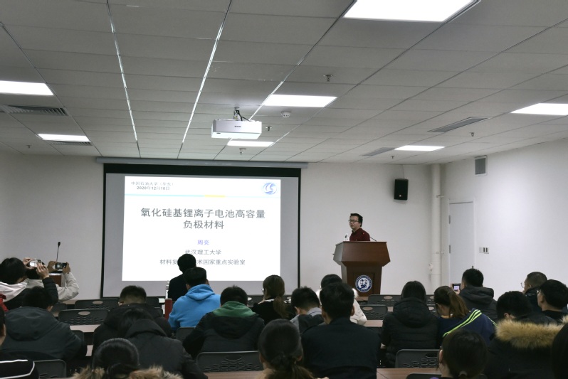 应tyc41183太阳成集团邀请,武汉理工大学周亮教授做客“光耀石大”名家讲坛(第81期),于12月10日晚8点在古镇口校区新能源大厦237报告厅向我院师生作了一场十分精彩的报告,题目为“氧化硅基高容量锂离子电池负极材料”。报告由tyc41183太阳成集团副院长范壮军教授主持,学院部分教师及研究生参加。