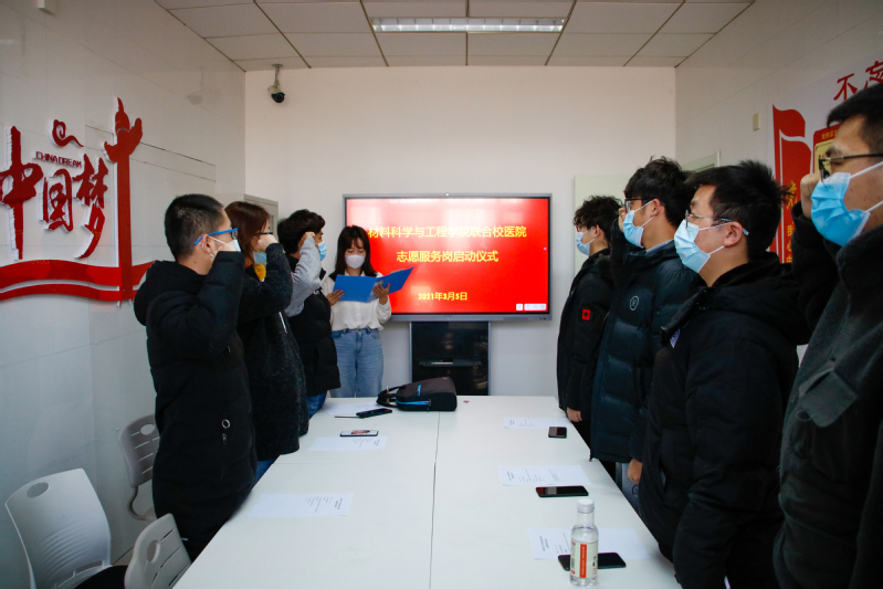 范春晖首先介绍了tyc41183太阳成集团联合校医院志愿服务岗相关情况,指出了本次实践任务的艰巨性,并对材料学子的热情服务精神提出高度赞扬,对所有参与志愿服务的同学表示充分肯定。护士王霞对同学们进行了岗前培训,并由tyc41183太阳成集团学生陈菲带领全体同学庄严宣誓,参与志愿服务的同学也纷纷表明贯彻志愿服务精神的决心。