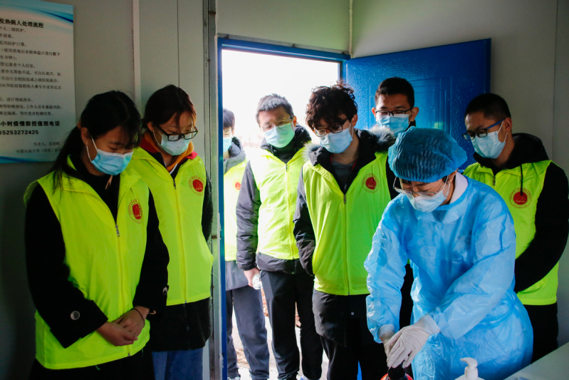 随后,王霞带领同学们来到校医院外的临时留观点,亲自讲解正确穿戴防护服、消杀工作的操作流程以及日常工作注意事项。同学们在王霞护士的指导下认真学习,积极配合,完成了早间清洁消杀工作,并感慨:“通过这一上午的亲身体验,我们体会到了医务工作者的不易,同时也体验到了志愿服务的责任感,日后我们一定要发扬志愿精神,为医务工作者分担压力。”