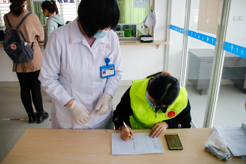 校医院护士王霞指导志愿者正确消毒 马达摄
