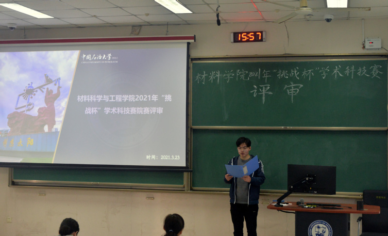 参赛项目分为自然科学类学术论文,科技发明制作A、B类,哲学社会科学类社会调查报告和学术论文类。比赛过程中,参赛团队配合项目展示PPT向评委们汇报项目。其中, 2019级研究生薛金伟在对其团队参赛项目“高效油水分离商用海绵的研发”的汇报中,通过分析产品优势劣势、阐明研发原理进行具体讲述。在评委提问环节中,评委综合各组项目立意、原理介绍等方面,从专业角度出发对各项目的亮点及存在的问题进行提问及点评,既对学生本阶段的研究、研发成果进行检验,又引导学生进行深入思考和项目完善。“通过这次比赛,我对于现在研究的项目有了更深的认识,同时也让我有了成果完善的方向,可以说是收益颇丰。”材化2002孙博林如是说。