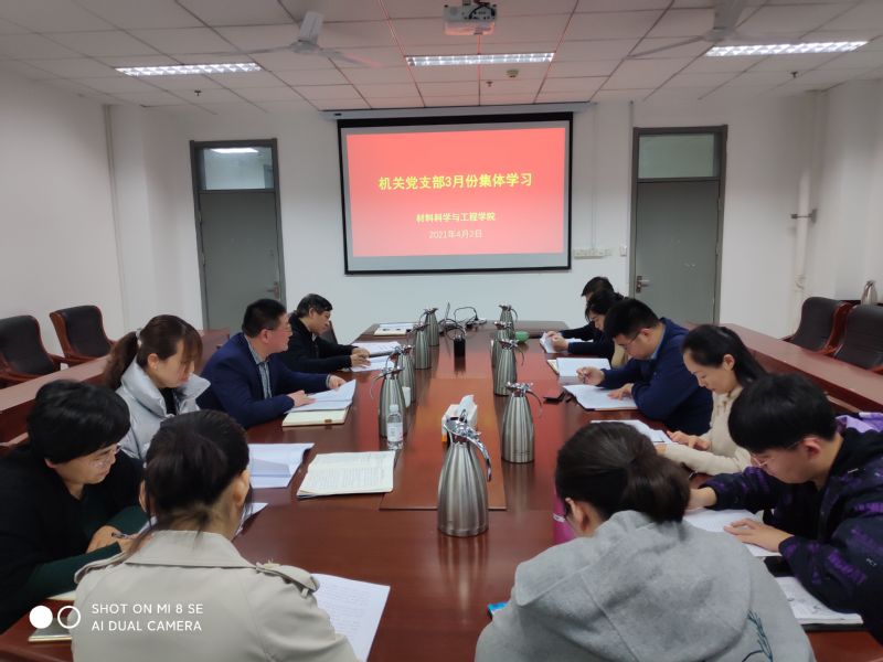 殷述广带领大家集中学习了陈宝生部长在教育部党史学习教育动员大会上的讲话、王勇书记在学校党史学习教育动员大会上《扎实开展党史学习教育,全面推进学校高质量发展》的讲话、《中共太阳成集团tyc41183委员会开展党史学习教育工作方案》、郝芳校长和王勇书记在2021年春季新学期工作会上的讲话等材料。