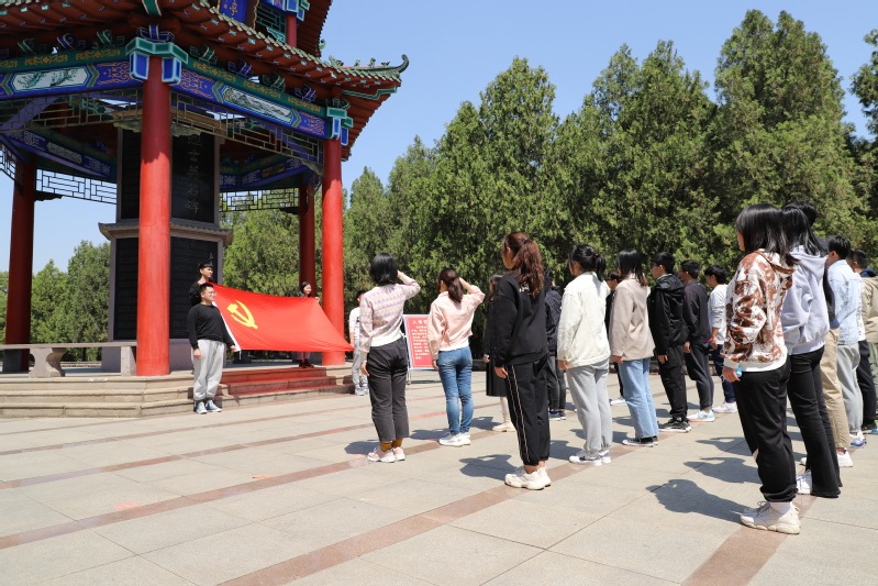 当日下午,人才班成员前往孟良崮战役纪念馆进行参观学习。在馆内,同学们跟随讲解员依次参观孟良崮战役形势、战役决策、战役实施、人民支前、欢呼胜利和英烈业绩为主要内容的展厅,大家驻足观看,深入了解整个孟良崮战役的经过以及沂蒙人民踊跃支前的情况,重温中国共产党人的爱国初心、壮志情怀和革命精神。参观结束后,人才班成员郭小天带领全体学生党员在粟裕将军墓前面对党旗重温入党誓词,表达对革命先烈的缅怀。