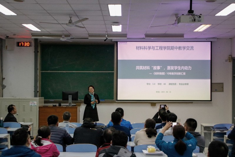 《材料物理》课程在我院最早获评“山东省一流课程”,也是目前我院唯一的“山东省课程思政示范课程”,甄玉花副教授是该课程主讲老师之一,以“讲出材料故事,激发学生内动力”为主题,按照时间顺序讲述了《材料物理》课程的10年创新教学历程。从她的动情讲述中,我们看到《材料物理》授课团队以“教育是唤醒”为教学信念,以“育人”为最高教学目标,尽全力开展课内外各种教学活动,逐步实现了从“教师思政”到“学生思政”,再到“人人思政”的课程思政特色。也看到了材料学子在课程学习之后的收获和效果,实现了该课程“助力材料学子的知识能力素养全发展”的育人目标。