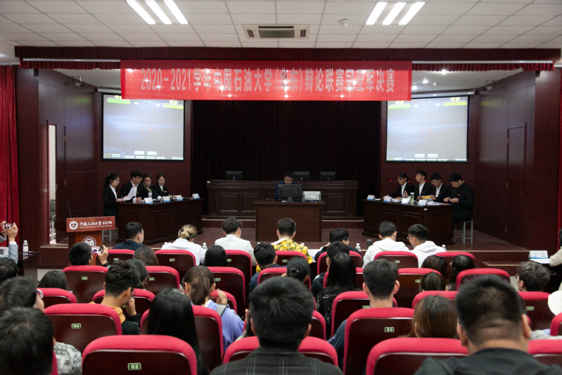 学校辩论联赛甲级联赛是由共青团中国石油大学委员会主办,时代辩论协会承办的校级最顶级辩论赛事。经过初赛、复赛、半决赛的激烈角逐,我院辩论队选手表现越发优异,最终在大家的共同努力下进入决赛,与海洋与空间信息学院辩论队争夺冠军。决赛中,我院派出周奕彤、高杏、张凯旋、赵清锝四位队员,就“法律审判之外的道德审判,是正当的么?”的辩题展开激烈的辩论,最终我院辩论队以14比13的成绩取得决赛胜利,获得冠军。