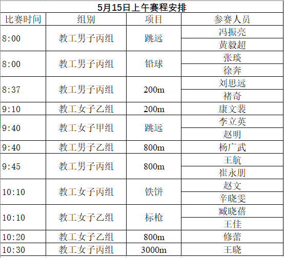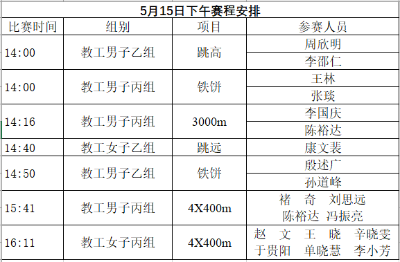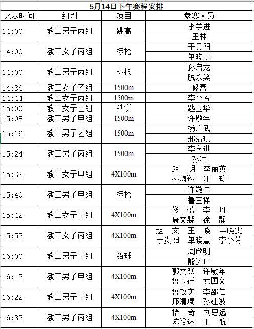 2021年学校田径运动会将于5月14日和15日举行,在教职员工的积极参与下,我院报名工作圆满完成。现将运动会比赛相关事宜通知如下: