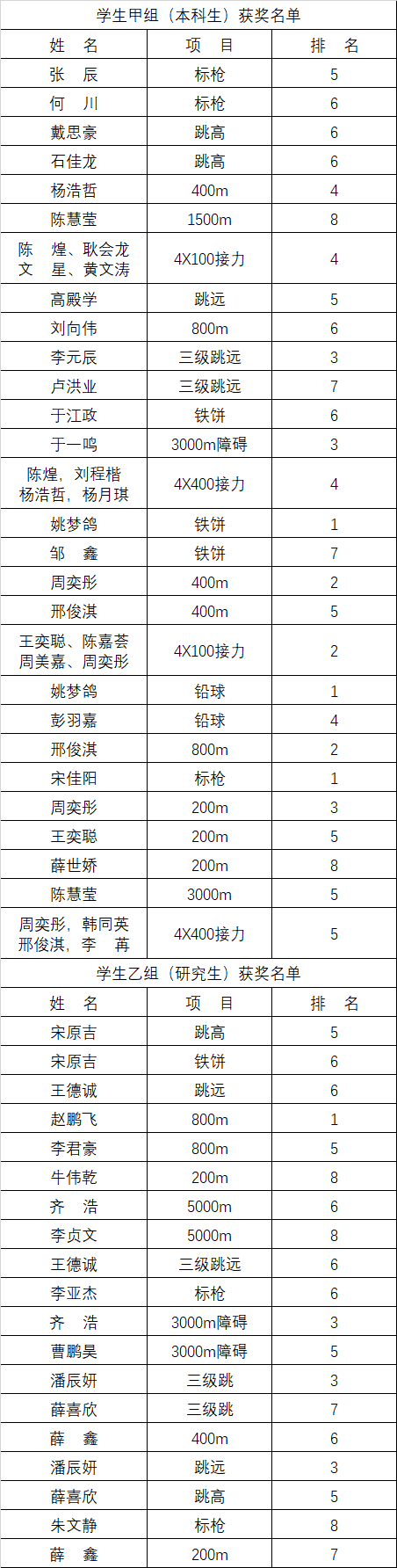 学生组4x400m接力合影