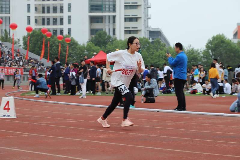 李小芳老师参加教工女子4×400米接力比赛