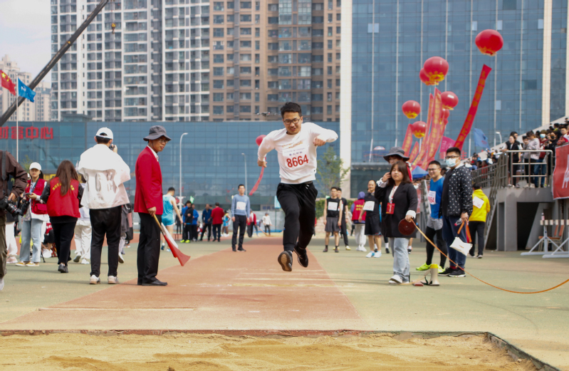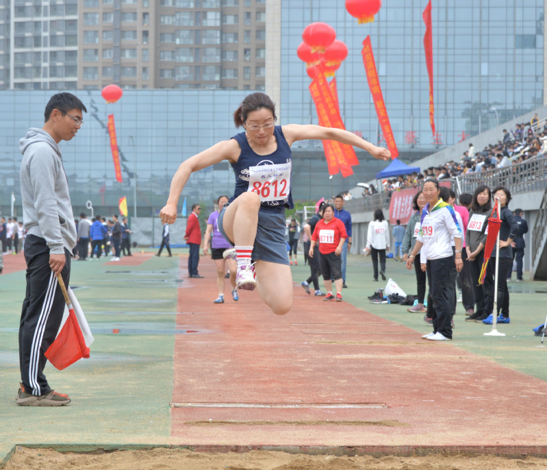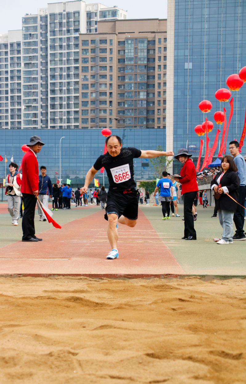徐奔老师参加教工男子三级跳远比赛