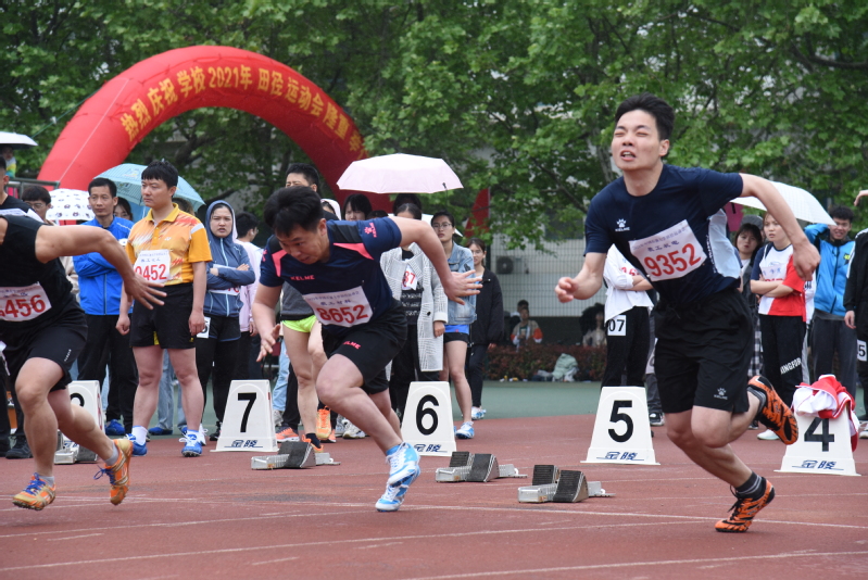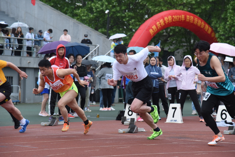 褚奇老师参加教工男子100m比赛