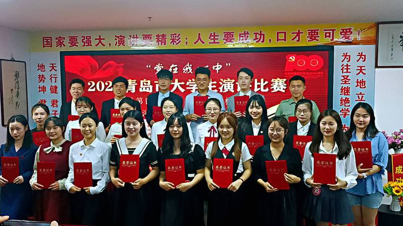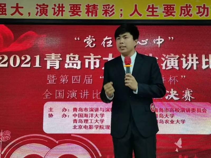 为隆重庆祝中国共产党成立100周年,重温党的光辉历程,歌颂党的伟大成就,充分展示当代大学生爱党爱国的深厚情怀,6月19日,青岛市演讲与演唱协会、青岛高校演讲委员会在青岛市演讲与演唱协会辉煌演播厅成功举办“党在我心中”青岛市大学生演讲比赛。学院2020级本科生乔远通进入决赛,并荣获本科生组二等奖。